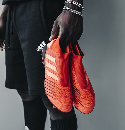 全新PREDATOR 19+ 球靴以鮮豔的橙紅配色打造鞋身,輔以橙色及黑色細節點綴;鞋面採用PRIMEKNIT針織物料和SOCKFIT COLLAR襪套式設計,能自然延展並貼合腳型,提供絕佳的支撐和舒適感。另印有立體熱壓摩擦紋理與CONTROLSKIN紋理;配上PURECUT LACELESS無鞋帶系統、ANATOMICAL UPPER仿製足跟形狀,能鎖緊足踝位置;為球靴提供最大的控球面積之餘從而提升控球力。   球員普巴(Paul Pogba)和奧斯爾(Mesut Özil)已率先穿上戰靴於球場亮相。